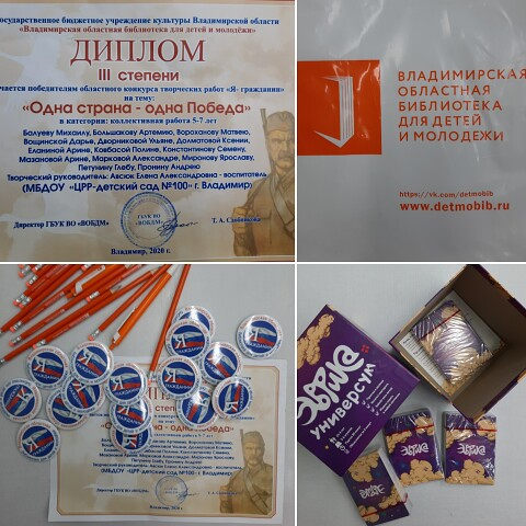 Воспитатель подготовительной группы №8 Авсюк Е. А. вместе с воспитанниками получили диплом 3 степени за участие в областном конкурсе творческих работ "Я-гражданин" на тему: "Одна страна - одна Победа".