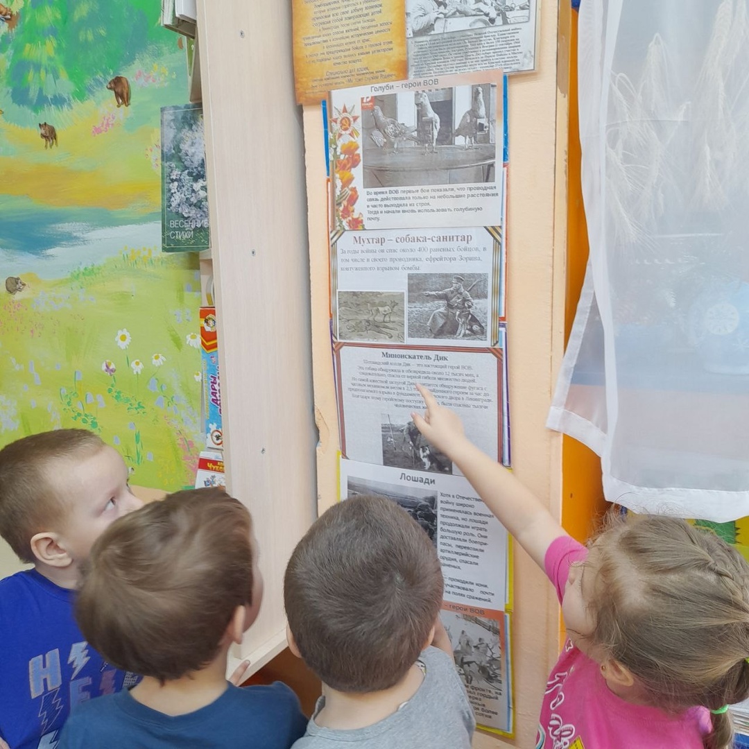 В средней группе прошло необычное занятие, которое вызвало особый интерес у ребят. Дети познакомились с удивительными историями животных, проявивших отвагу и верность людям в годы Великой Отечественной войны.