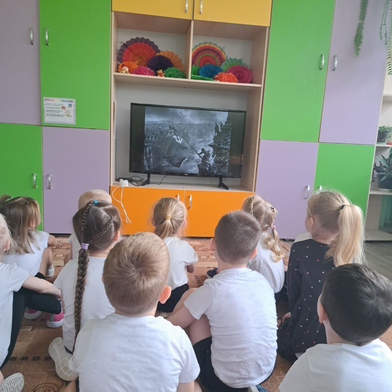 Дети внимательно следили за кадрами исторической хроники, слушали рассказы о героизме советских солдат и переживали вместе с героями фильма радость великого праздника. После просмотра участники поделились друг с другом впечатлениями от увиденного, выразив восхищение подвигом наших предков и гордость за великое прошлое своей страны.