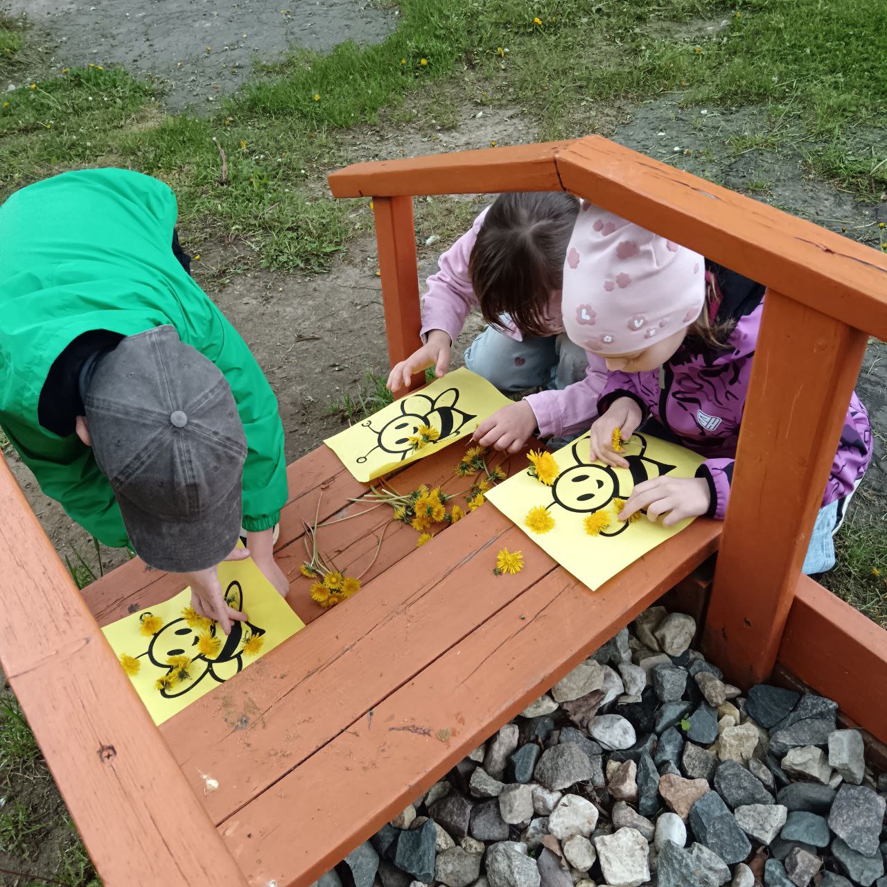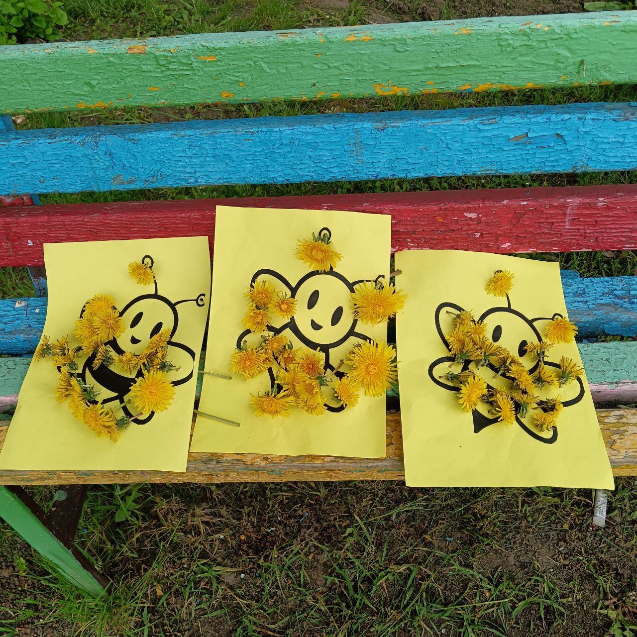 Посмотрите, какие очаровательные пчёлки из одуванчиков создали ребята! Настоящие солнечные шедевры, наполненные светом и радостью детства!